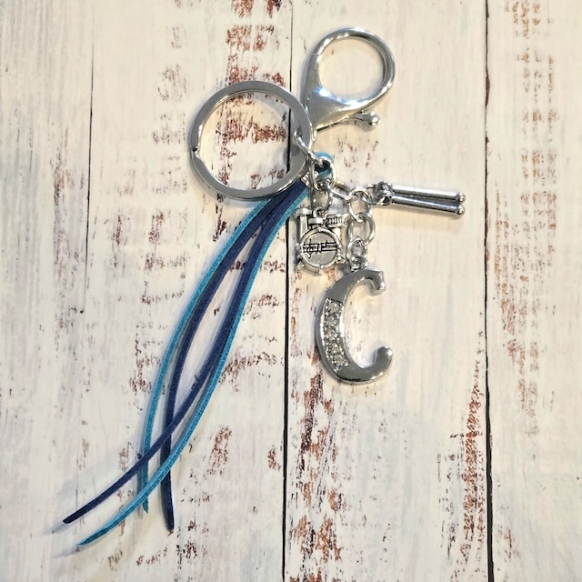 ChiikoのCと、 好きなブルーとドラムセットとドラムスティックを一緒にキーホルダーにしました!