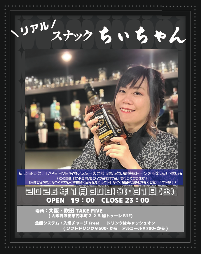私 Chiiko と、TAKE FiVE 名物マスターのヒカルさんとの軽快なトークをお楽しみ下さい★